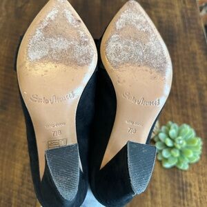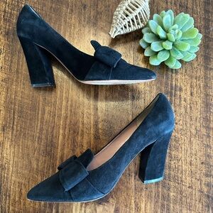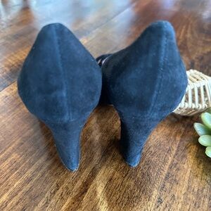 Nice preowned condition. Light wear to suede, but overall very nice. Made in Florence, Italy. Genuine suede leather. 3.25” heel. Pointed toe with bow and cutout detail. Very elegant shoe!