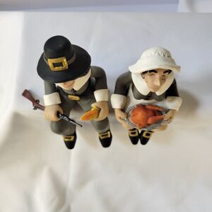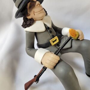 Set 2 D Manning Thanksgiving Shelf Sitter Pilgrims Man Woman Rifle Clay Figures