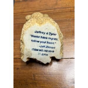 -3" Tall, "Never have regrets, follow your heart" Teddy bear with boy and a ball figurine.