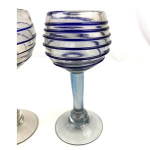 Set 2 Hand Blown Mexican Glass Wine w/ Blue Swirl Bubbles