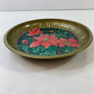 Set 2 Holiday-Themed Metal Serving Trays With Winter Scene & Poinsettia Design
