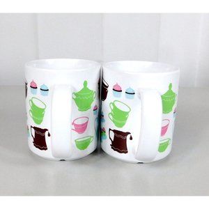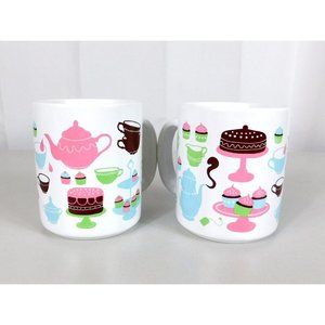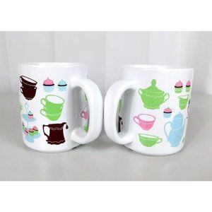 Set 2 Ikea Coffee Mug Cups Tea Party Theme Teacups Teapots Cupcakes Multi Color