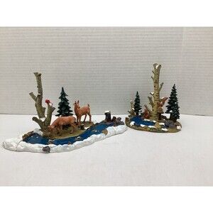 Set 2 LEMAX Village Landscape Accents Nosey Squirrels Feeding Deer Boxed 2000