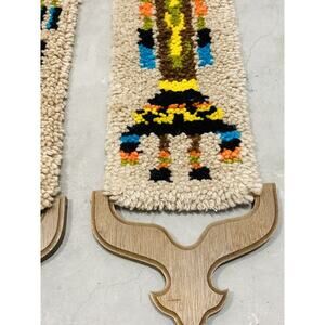Vintage Pieces from Arizona. Beautiful in great condition. Well Kept. See all photos as part of description. Each Measure about 46" with Both Top and Bottom wooden pieces. Latch hook pieces alone are 34.5"
