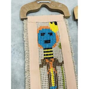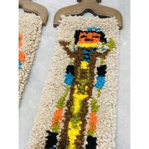 Set 2 Latch hook Wall Hanging Kachina Native American Yei Symbol 46" Vintage Blu