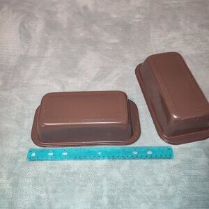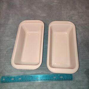 Set 2 Pcs Loaf Baking Tray Mold Shape Bakeware Metal Vintage Brown Cream