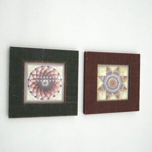 Set 2 Rustic Quilted Pattern Wall Art 7.5" Wooden Frames Large Star Dahlia Preowned