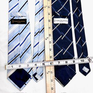 Set: 2 Valentino F Neckties Blue Striped +1 Valentino L Blue Handkerchief (60)