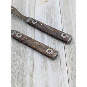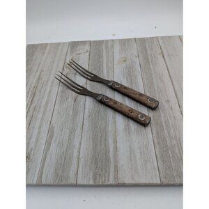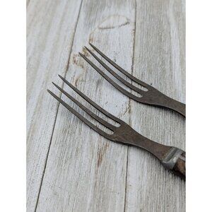 Set 2 Vintage 3 Prong Tine Meat Serving Fork Wood 7 1/4" Stainless Steel Granny