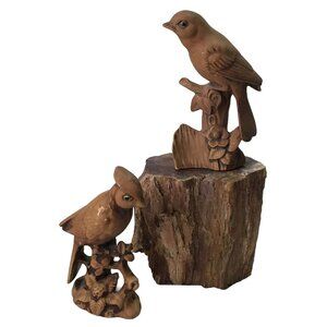 Set of 2 Vintage Perched Robin Birds, 4.5in, crafted from ceramic in a brown matte finish. Marked Japan, these unbranded pieces offer a Mid-Century Modern touch to your home decor.