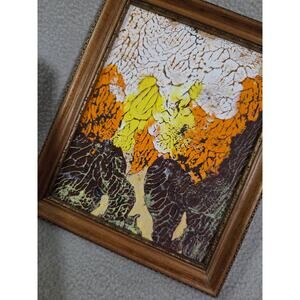 Set 2 Vtg Framed Mini Acrylic Paintings Anna Mike Wall Gallery Orange
