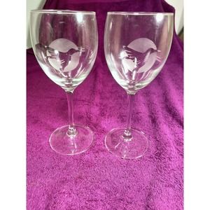 Set 2 Water Goblets in Hummingbird Vintage late 80s Frosted Stem 8 1/4"