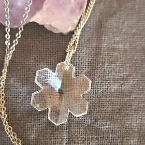 Set 2 glass prism necklaces sun catcher snowflake multi faceted 1980s silver