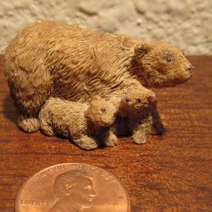Tiny little bear figurines from various artists. Great for decorative display. Lots of fine detail. Note the size comparison of the figurines to a Lincoln penny. We recommend that you bundle this group with the other bear figurine groups offered. We would have placed them all in one lot but we were limited in the number of photos. Thank you for shopping with us! Katy