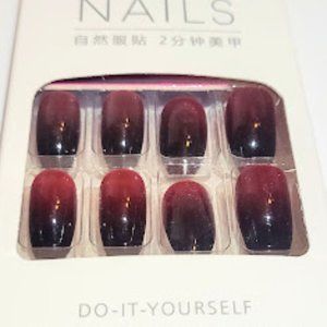 Set of 24 Wine Red & Black, Glossy Full Cover Nails Asstd Sizes for a sure fit includes nail stick, glue adhesive tabs &Asstd Sizes for a sure fit includes glue adhesive tabs & mini nail file and may have a nail stick included in some pkgs. Approx 18mm length. Bundle 2 or more sets for discounted price and shipping. Regular $11 with bundle of 2 or more, $9 each and $5.95 Shipping