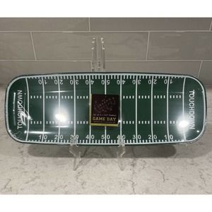 Showcase your love for football with this set of three serving trays from Game Day. The football field pattern on each tray adds a unique touch that will impress your guests. Measuring 17.5" x 6.5", these large trays are perfect for all occasions. Crafted from durable and chip-resistant plastic, these stackable trays are reusable and easy to clean. We have 2 sets available at the time of this listing, as well as other coordinating pieces - bundle to save! We pack with care and ship fast.