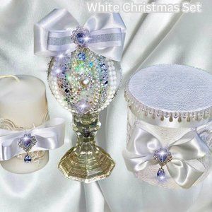 3 piece Set, Handmade Christmas Tree Ornament with Box & Candle, White Elephant Gift/Present, bling Christmas Gift, Birthday Gift, Gift for her, Gift for Mom, Gift for grandma, Luxury custom gift.