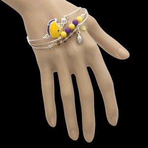 🌼 Set 3 Purple & Yellow Football Bangle Bracelets