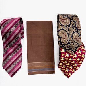 #61) 3 Neckties and 2 Handkerchierf, designed in Italy, made in Japan, France, Itlay