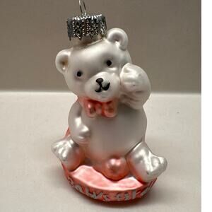 Set 4 Baby Pink First Christmas 2005 Glass Ornaments Bear Pacifier Booties Block