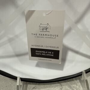 Elevate your dining experience with this four-piece durable melamine 9x2”pasta bowl set from Rachel Ashwell Farmhouse. Each bowl features a stylish black rim on a classic matte white ground. The organically irregular round shape make these bowls seem like hand thrown ceramic at first glance. We have many matching pieces to this collection available at the time of this listing. To combine shipping, add to cart and make one purchase at checkout.