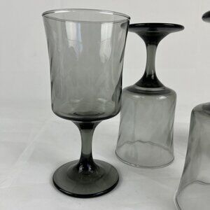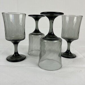 Set 4 VTG Libbey Smoke Gray Optic Swirl Goblet 8oz Wine Water Glasses