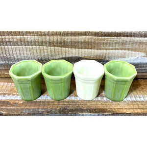 Set 4 Vintage 1930s Akro Agate Green Slag Jadeite Shot Drink Glasses 2"