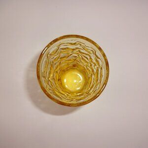 Very good pre-owned condition. Clear gold, textured glass, flat juice glasses. Holds approximately 4 ounces and measures approximately 2-1/4" (top) x 3-7/8". No chips, cracks or stains.