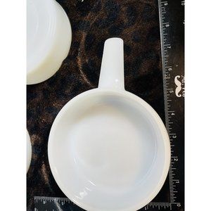 Vintage Set 4 w 3 Lids Handled White Milk Glass Ovenware 14oz USA J-2639.
