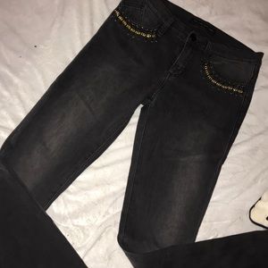 Long sleeve good tour top size small sleeves has two buttons on it the back is completely open . Rock and Republic skinny jeans with detail pocket smoked black jeans stretch.