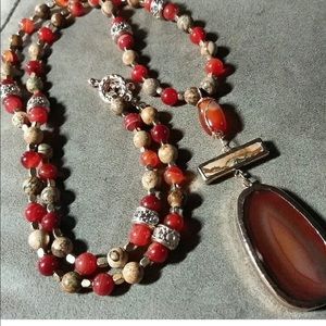 πππThis complete one of a kind Red Agate, and Picture Jasper set is simply beautiful if I do say so myself! Featuring a stunning necklace measuring 41 inches from end to end. With Cubic Zirconia, and brass spacer beads. A perfect Fall accessory. πππ