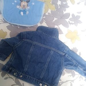 Adorable jeans jacket! Little boy 6/9M. Paired with Mickie Mouse bib.