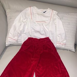 Adorable velvet wide leg pants with white and red top perfect for the holiday pictures, only worn twice