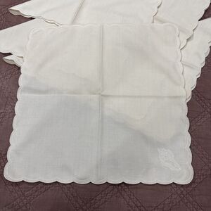 Set 6 Ivory Scalloped Edge Napkins With Shell Motif. Condition is Pre-owned. Shipped with USPS Ground Advantage.