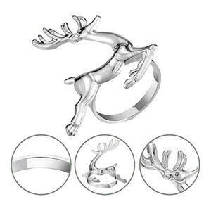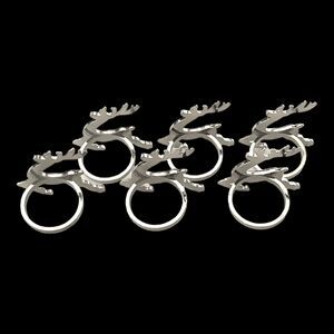 Set (6) Silver REINDEER NAPKIN RINGS Holders Holiday Christmas Table Decor 2.25"