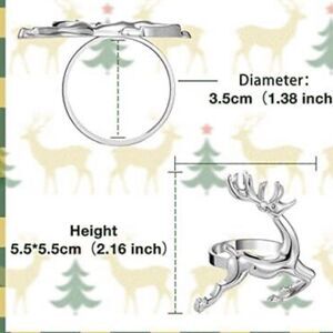Set (6) Silver REINDEER NAPKIN RINGS Holders Holiday Christmas Table Decor 2.25" - NEW Condition!