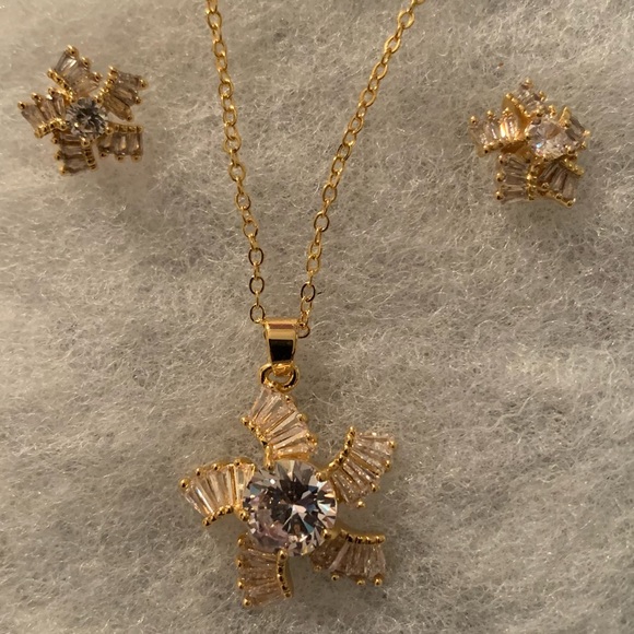 Set 2 pcs stud earrings and necklace gold plated