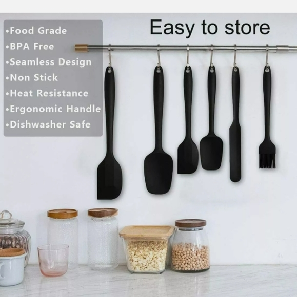 * Food-grade silicone: Silicone spatula set is made of food-grade silicone without BPA. There are six pieces in the set, comes with spoon spatula, large spatula, small spatula, brush, jar spatula, Cake Turner, can be used for any food, and have a long service life.* Seamless design-suitable for mixing, scraping and folding various foods, no seams or cracks to capture bacteria, these spatulas are easy to clean and ensure food safety, and the integrated seamless design makes it durable and not easily broken, The soft handle holds tight even if your fingers are wet.* Heat resistance: up to -40-240℃ and will not melt during cooking. It can be safely used in coatings and non-stick cookware, and is very suitable for hot food use and convenient for your life.* Special design: Say goodbye to old-fashioned spatula. The stainless steel core technology in the spatula kit doesn't break as easily as cheap plastic spatulas, and it doesn't jam food or mold, especially suitable for mixing, wiping and scraping, and can be used day after day.* DISHWASHER SAFE: Silicone Spatula set can be cleaned in the same way as regular cooking utensils, either by hand or in the dishwasher. Do not use abrasive cleaning pads, as they can scratch the surface of silicone and should be avoided.
