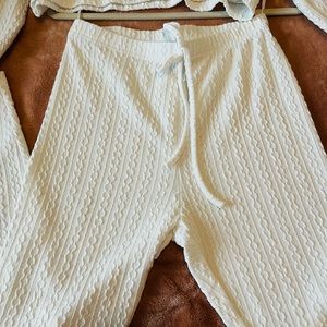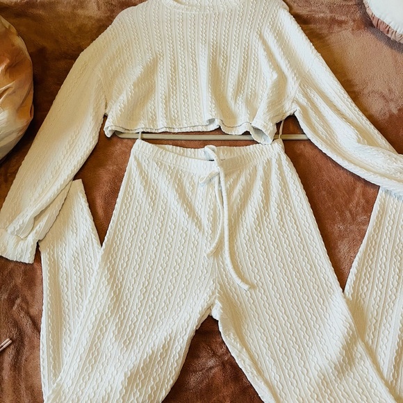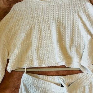 Crop top long white sleeve sweater with matching sweater like bottoms white color