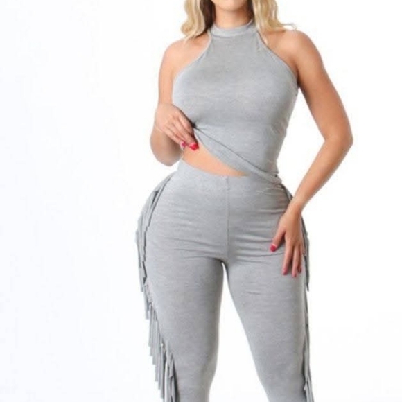 pant sets with top and side ruffles