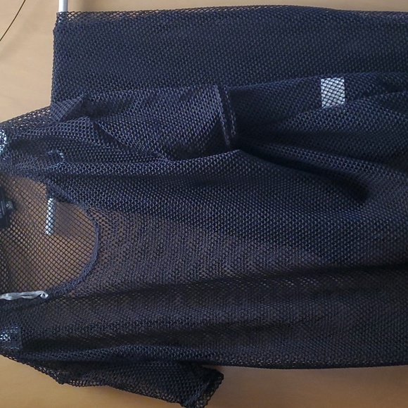 Black fish net top and pants separate shirt shirt has a tie in the front pants are wide leg. The top is 1X the pants are small