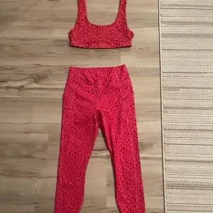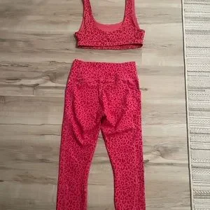 Leopard PINK Fabletics set. Size medium for top & bottom. Runs slightly large. Very comfortable. Also side pockets.