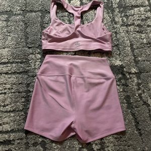alo pink workout set both shorts and top are size small, worn once perfect condition , price is firm