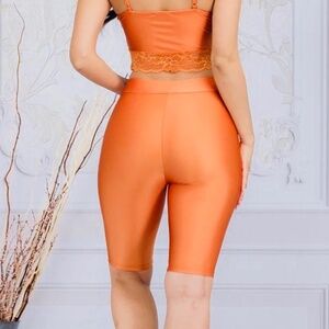 2 pc crop top and biker shorts trimmed in lace true to size