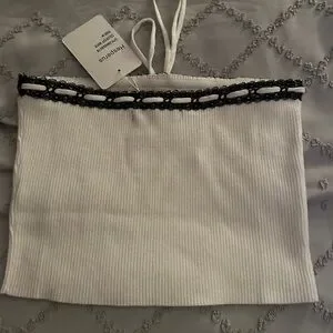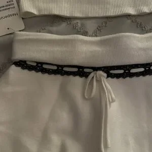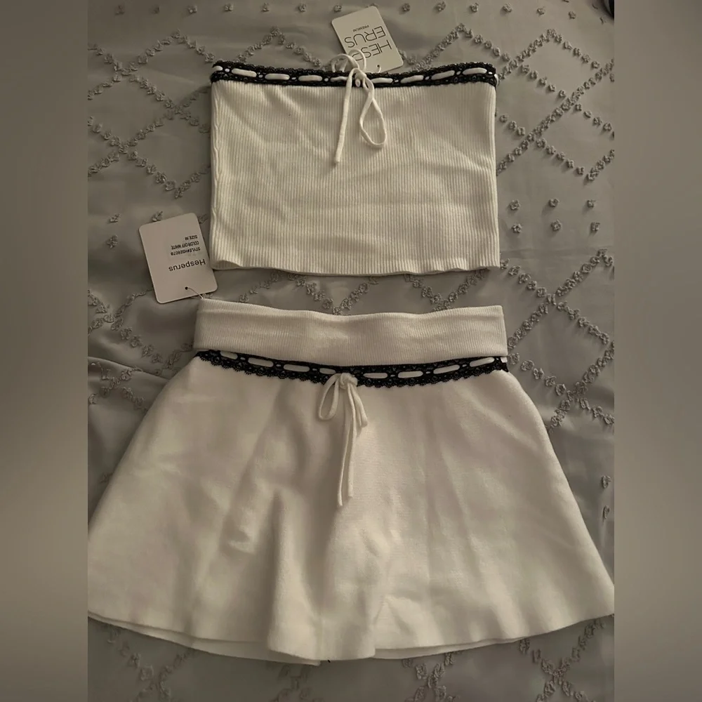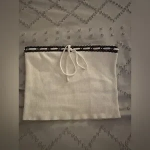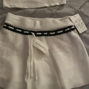 Chic white mini skirt with elegant black lace trim. Perfect for stylish outings.