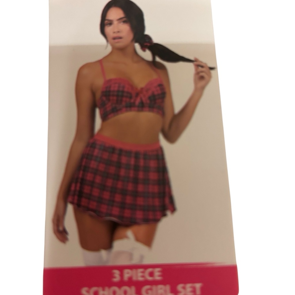 Vibrant orange plaid 3-piece set with a stylish design.