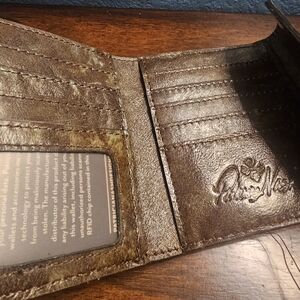 Exterior: 2 front slip pockets, 1 front zip pocket, 1 rear slip pocket, burned edge finish