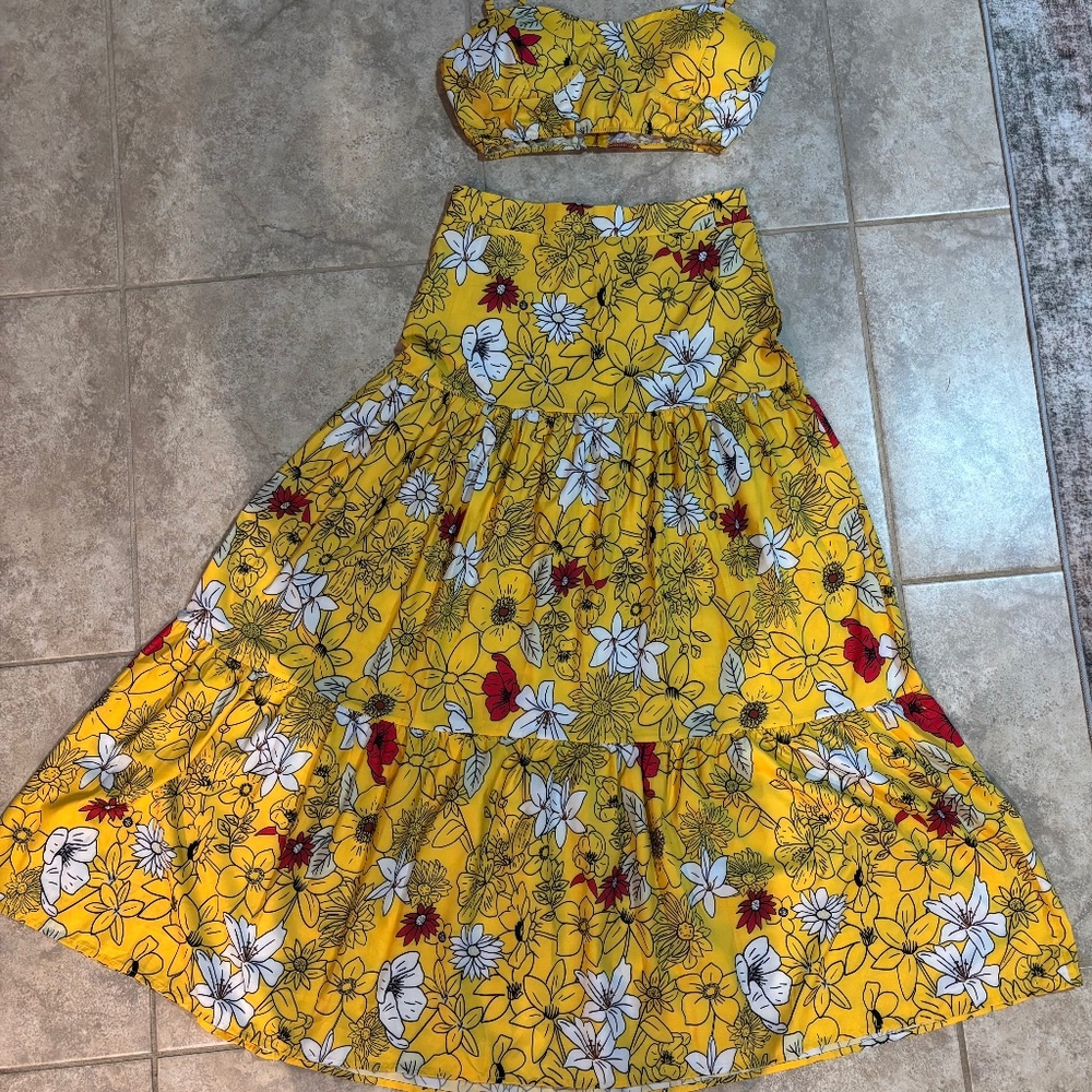 Beautiful floral skirt and top set, super fresh, elegant, and sexy all at once.