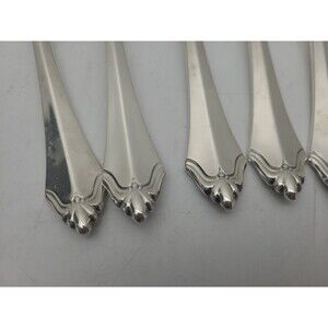 Elevate your dining experience with this set of 8 Oneida Heirloom Community BELCOURT Salad Forks. Crafted from high-quality silverplated materials, these forks boast a glossy finish that provides a classic touch to any table setting. The traditional style of these forks is perfect for those who appreciate timeless design and elegance. Whether for everyday use or special occasions, these forks will serve as a versatile addition to your flatware collection.