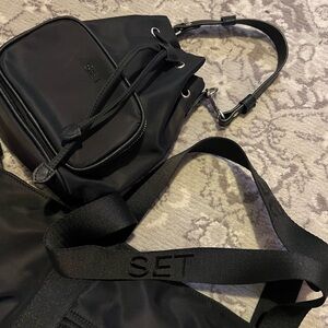 - Bucket bag has silver hardware and come with two straps strap (handle and crossbody)